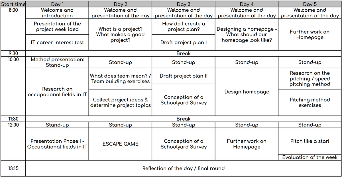 In principle, the concept can be used at any school within the framework of project weeks.